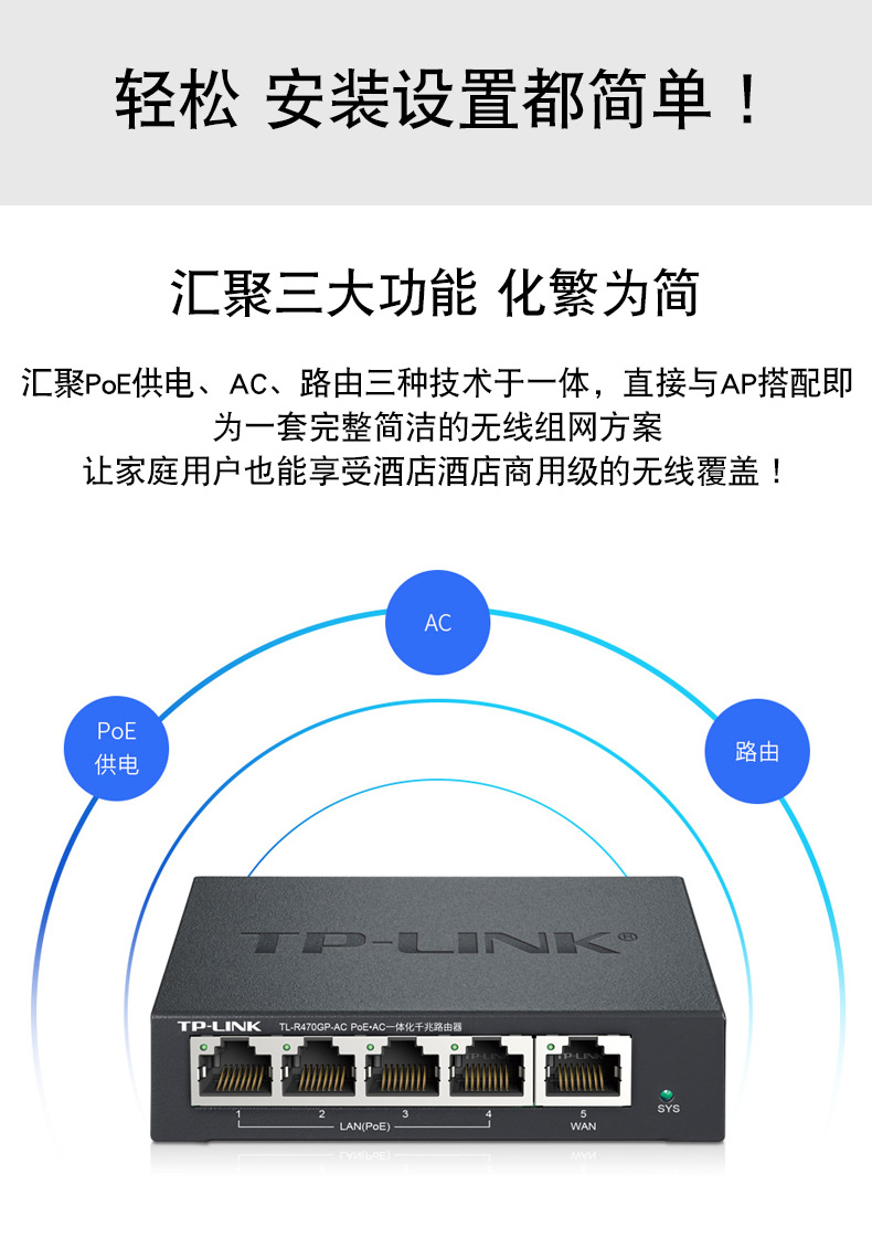 TP-LINKTL-R470GP-AC千兆有线路由器 5口POE组网AC管理