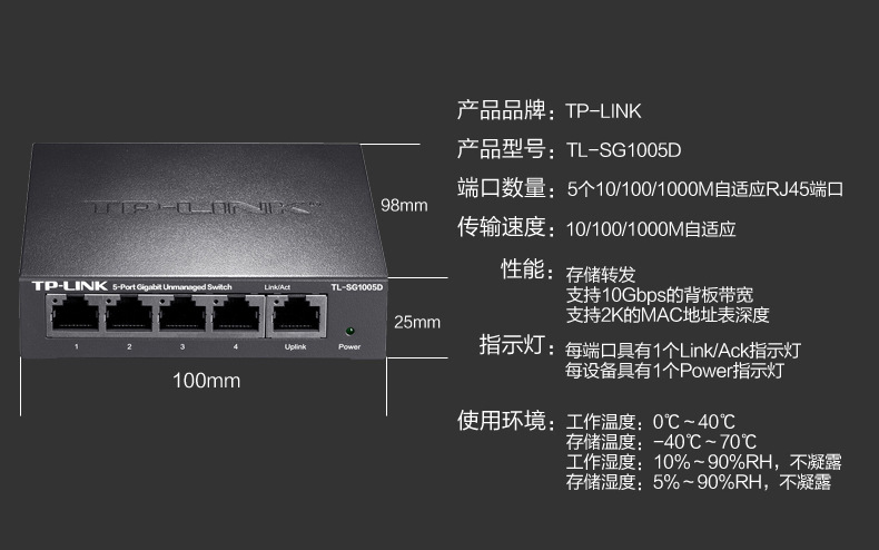 TP-LINK TL-SG1005D千兆交换机5口网络分线器分流器交换器1000M
