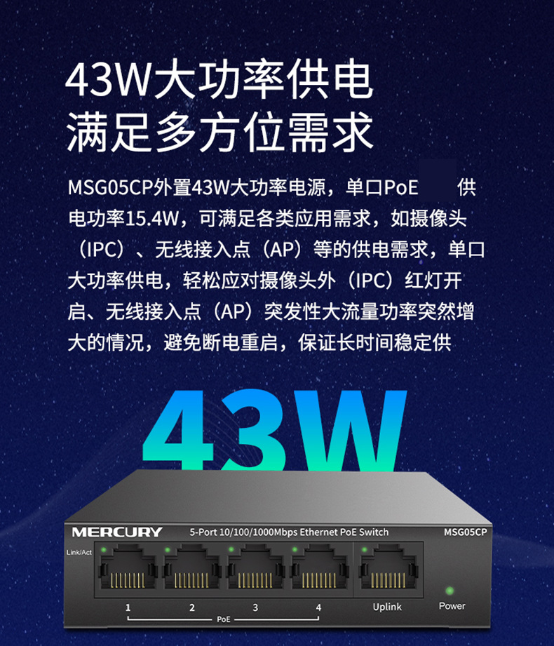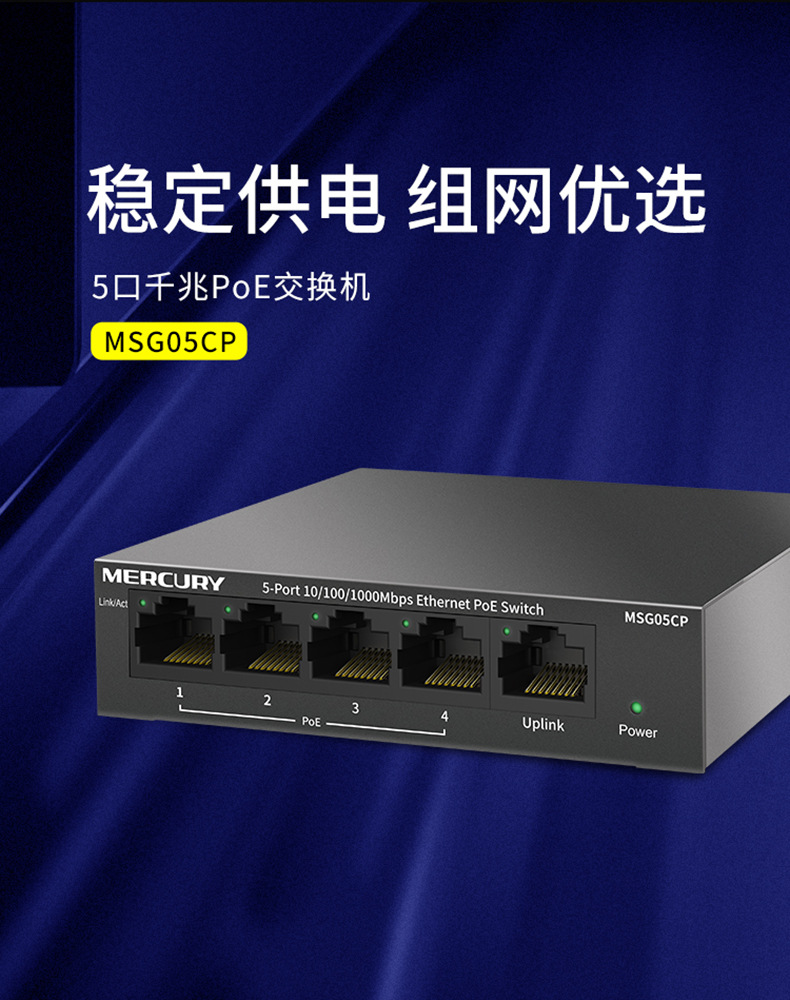 水星MSG05CP 5口全千兆PoE供电交换机安防监控4口POE供电模块