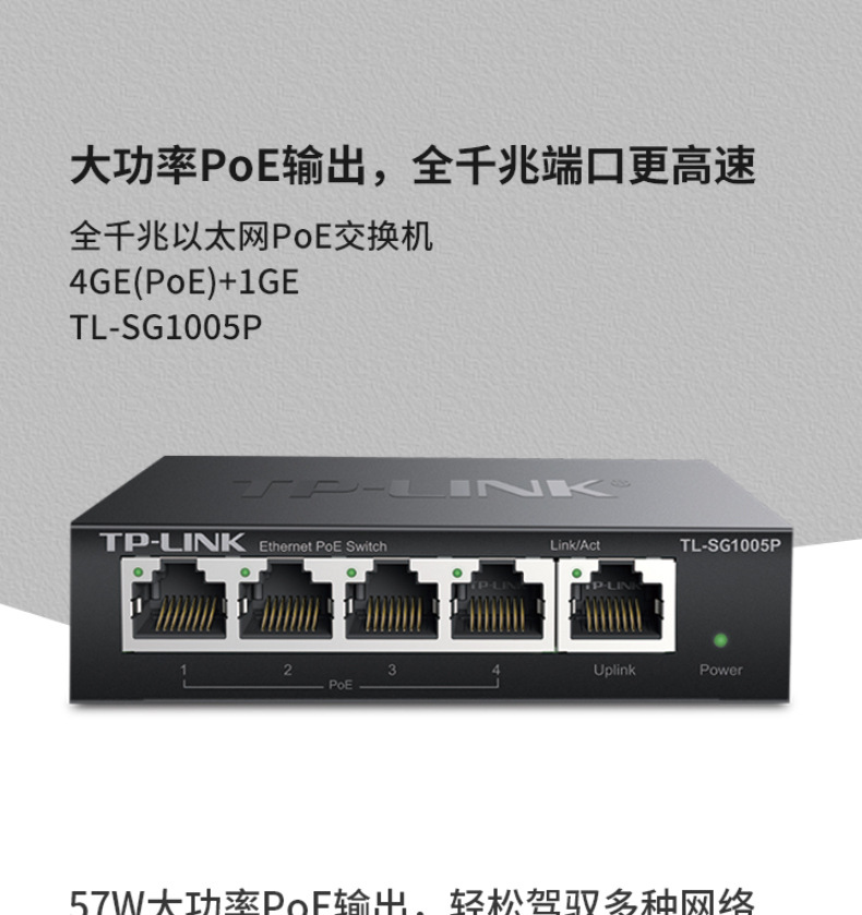 TP-LINK TL-SG1005P 5口千兆POE交换机4口标准供电网络监控无线AP