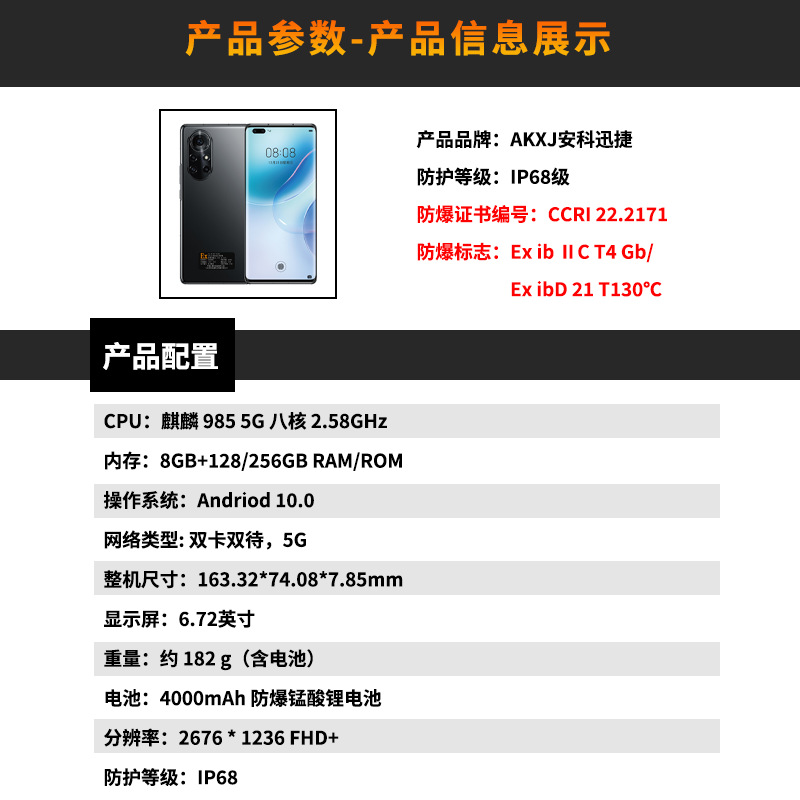安科迅捷 化工用防爆手机 工业三防PDA终端 5G全网通 高清摄像头