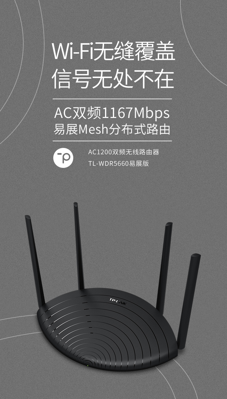 TP-LINK无线路由器1200M双频5G高速WIFI家用光纤TL-WDR5660易展版
