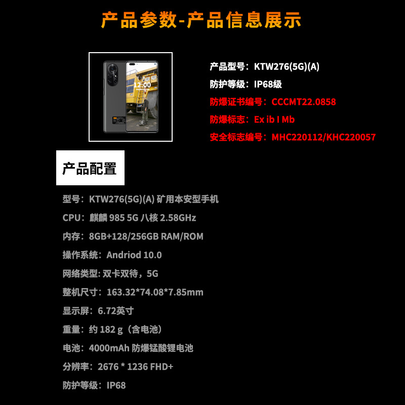 安科迅捷KTW276(5G)-A矿用本安型防爆手机矿用防爆手机5G全网通