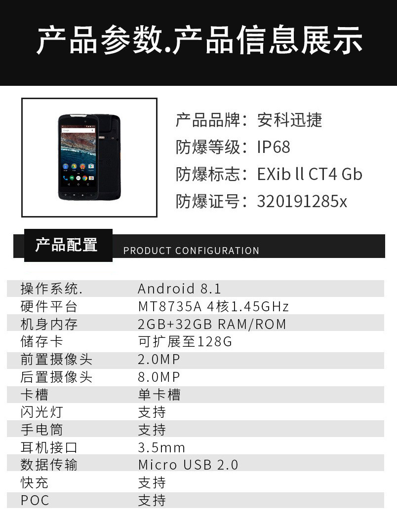安科迅捷ST52化工用手机防爆手机化工厂操作人员配备防爆手机终端