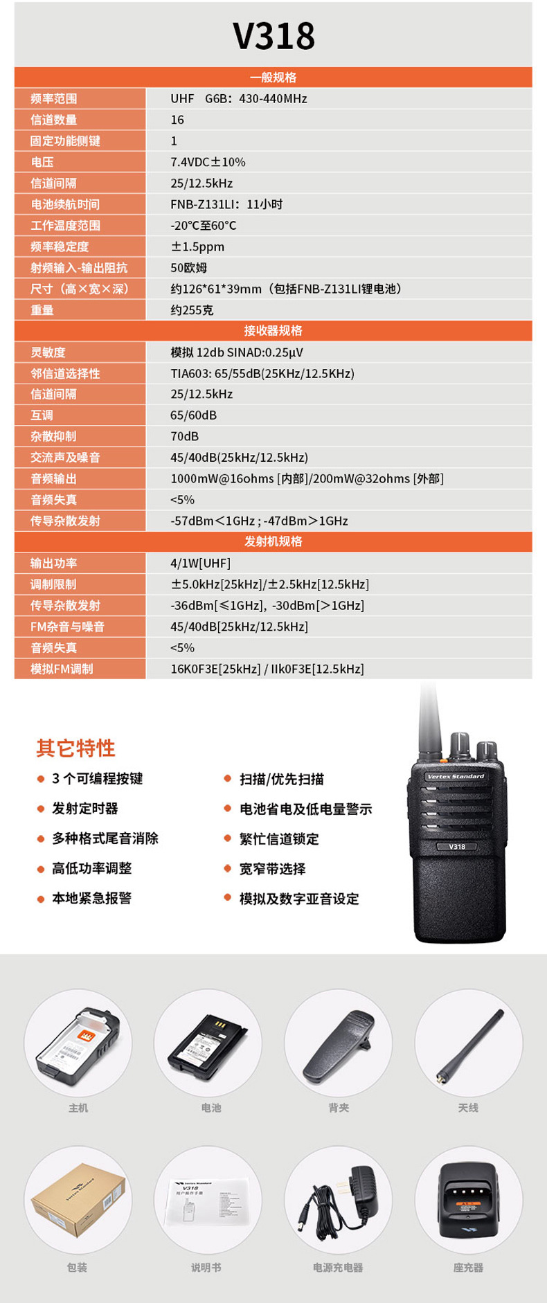 摩托罗拉原装对讲机V318升级版威泰克斯民用大功率手
