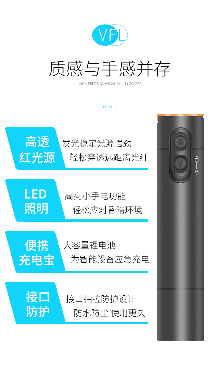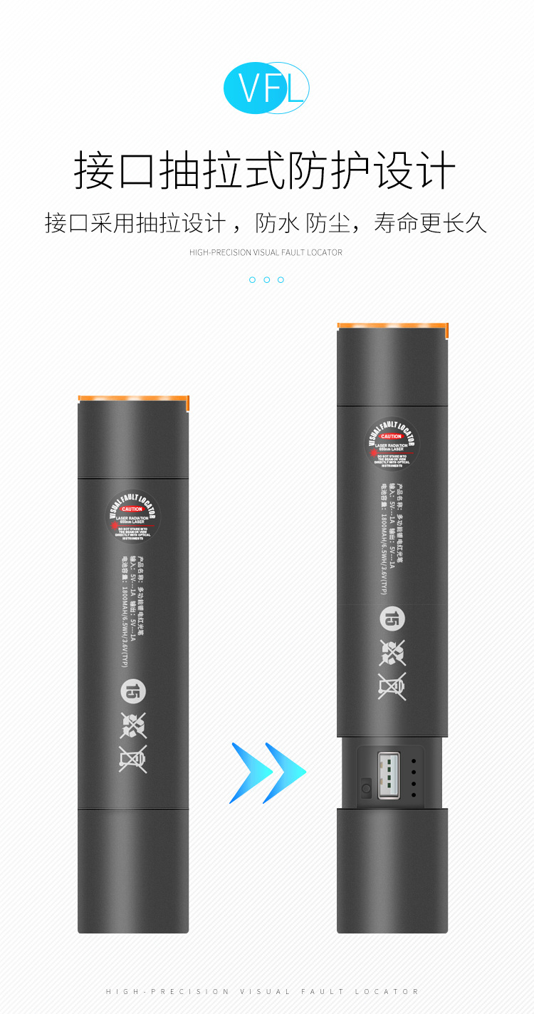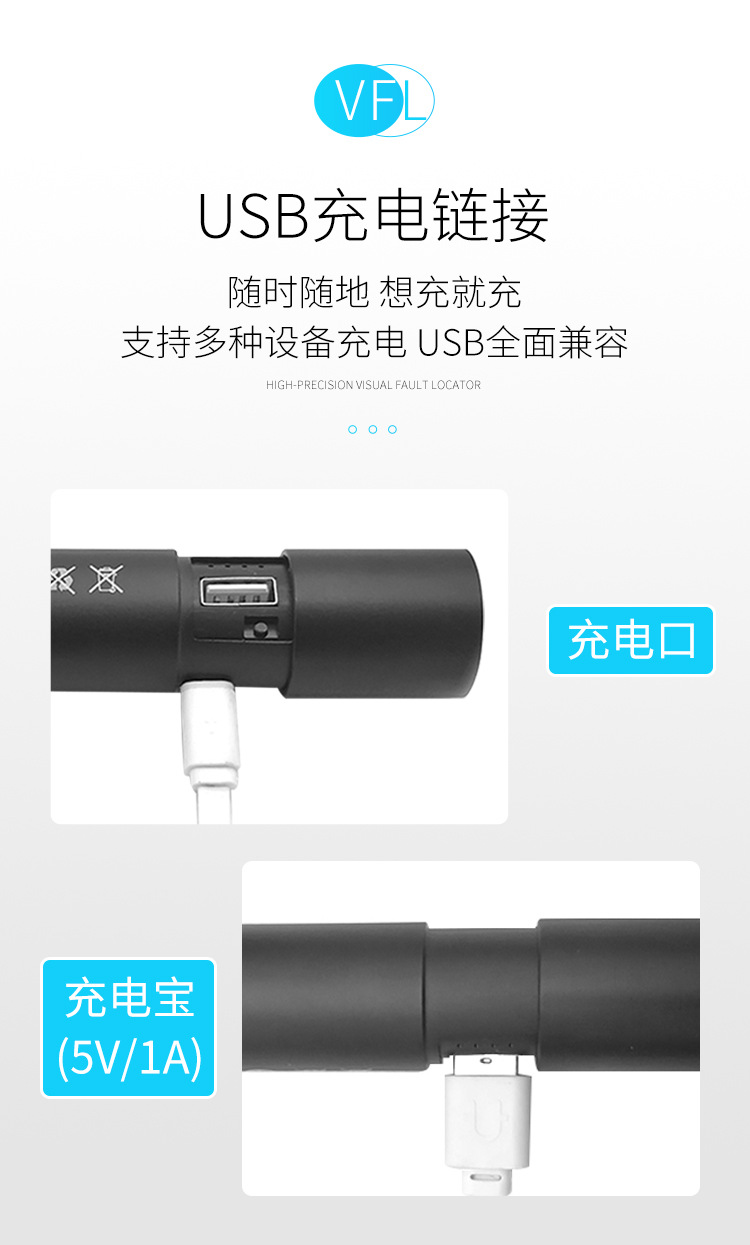 30km红光光纤笔可充电式红光源光纤测试打光笔锂电池红光笔充电宝