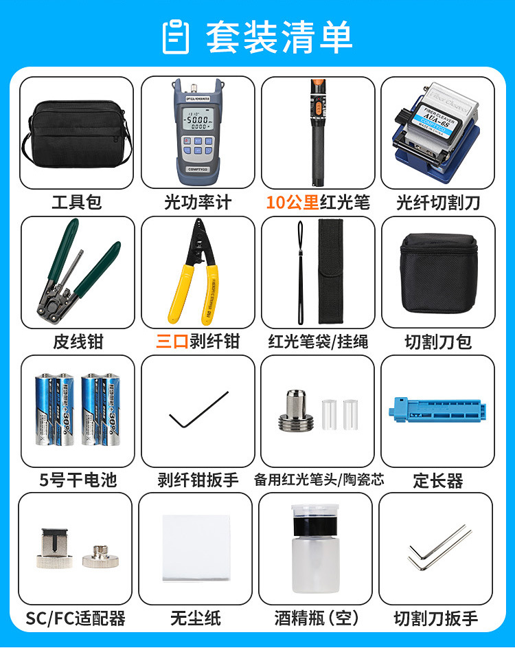 FTTH光纤冷接工具包套装AUA-6S切割刀红光笔光功率计