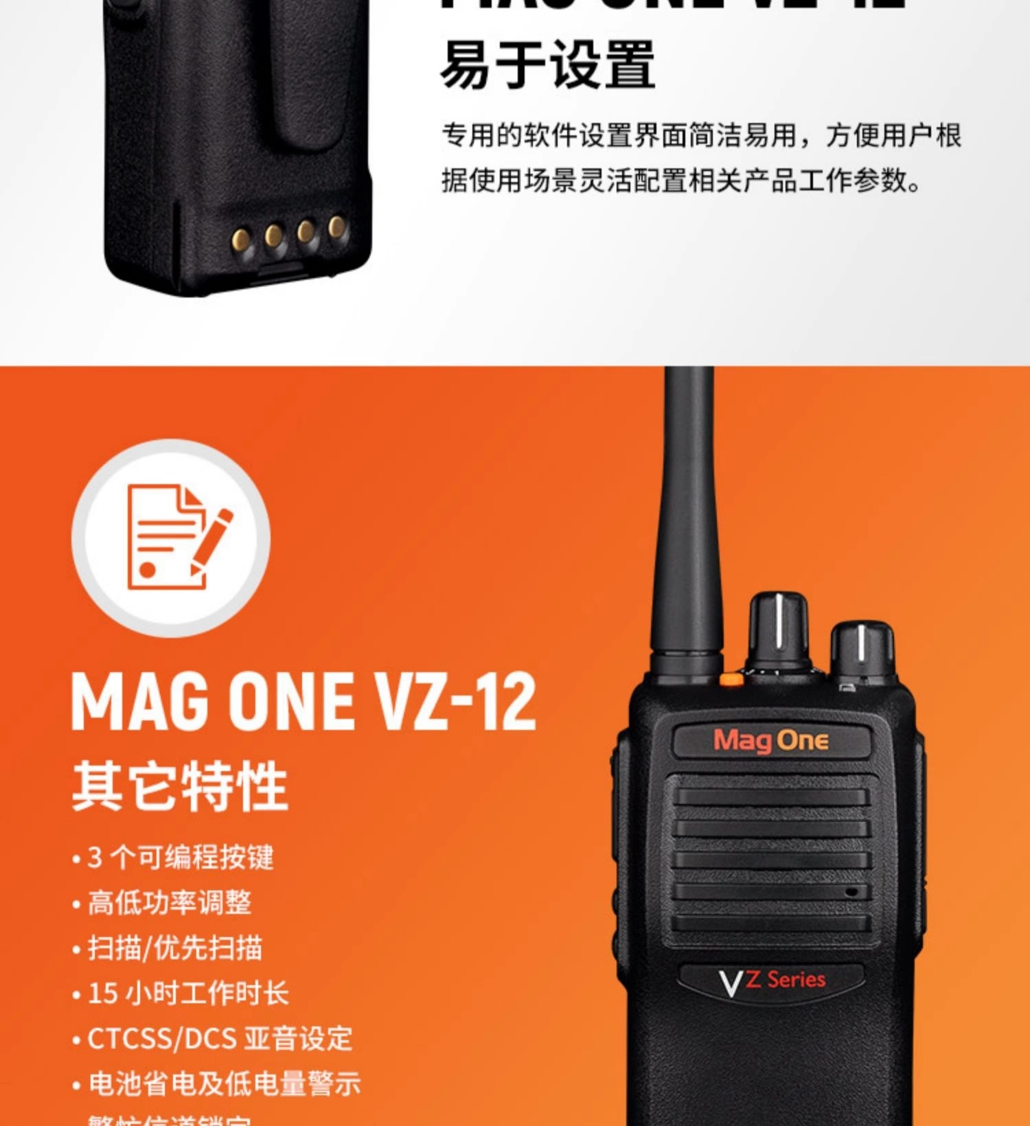 摩托罗拉对讲机VZ-12民用模拟大功率专业户外机Mag One远距离