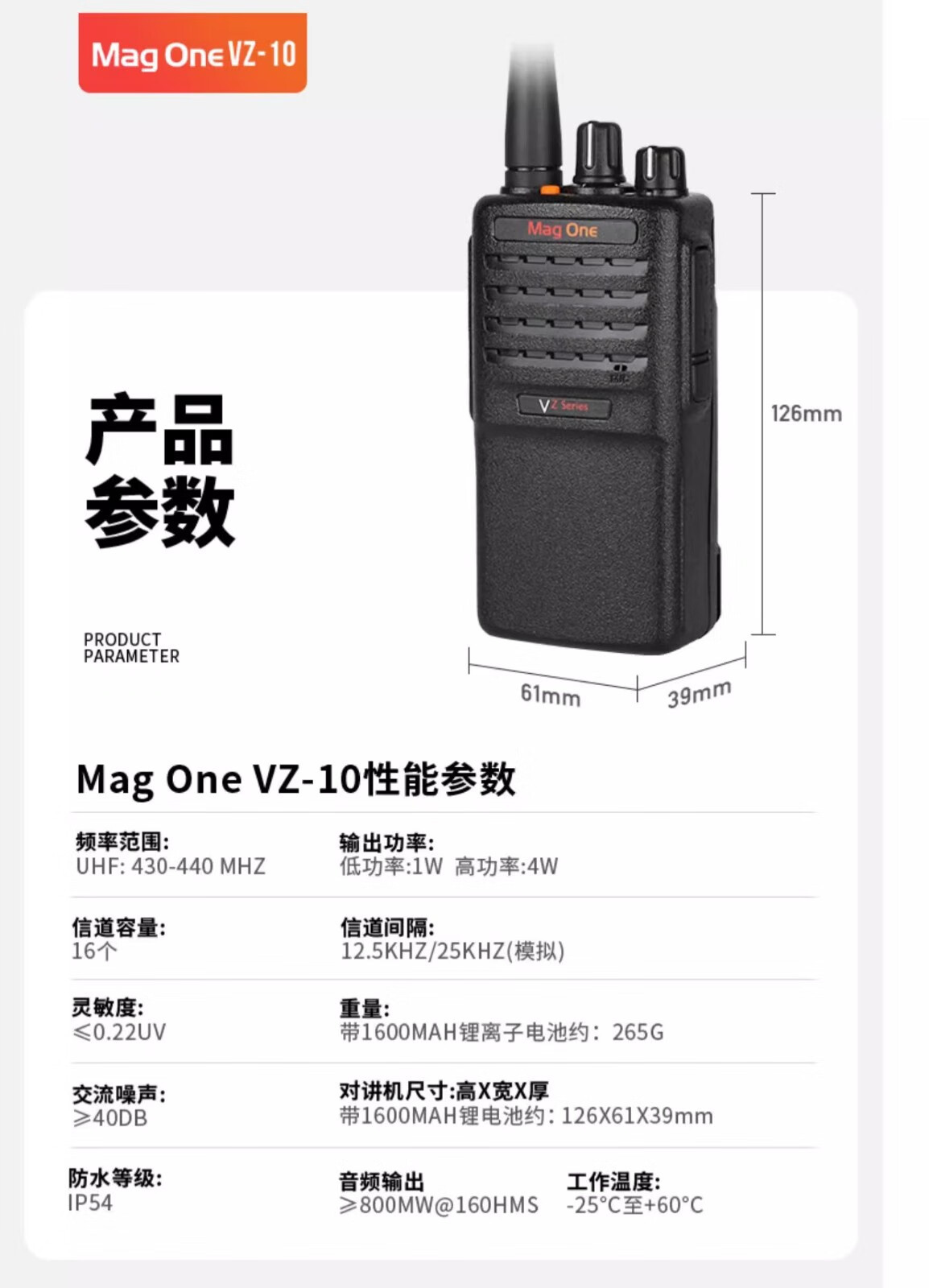 适用摩托罗拉对讲机VZ10户外大功率无线电民用Magone酒店工地工厂