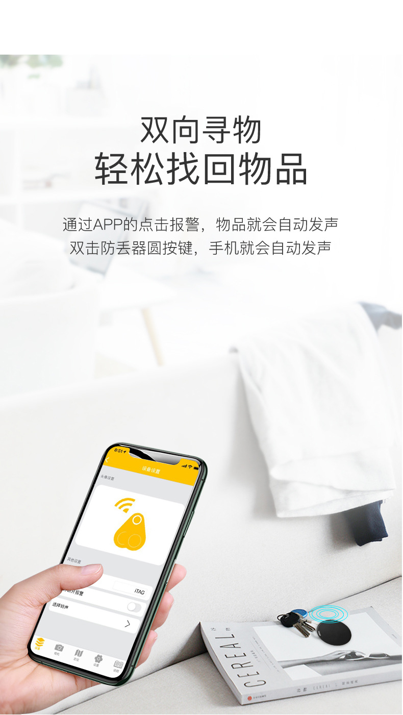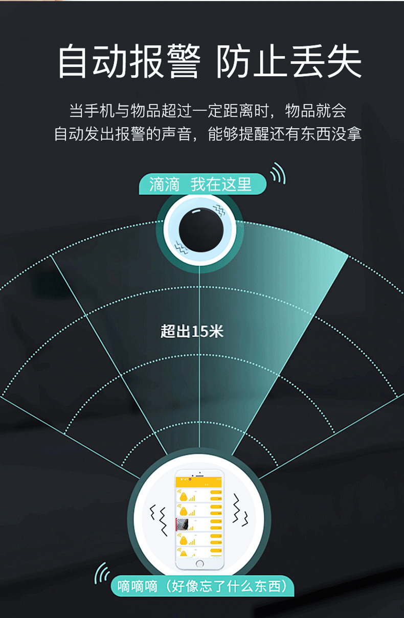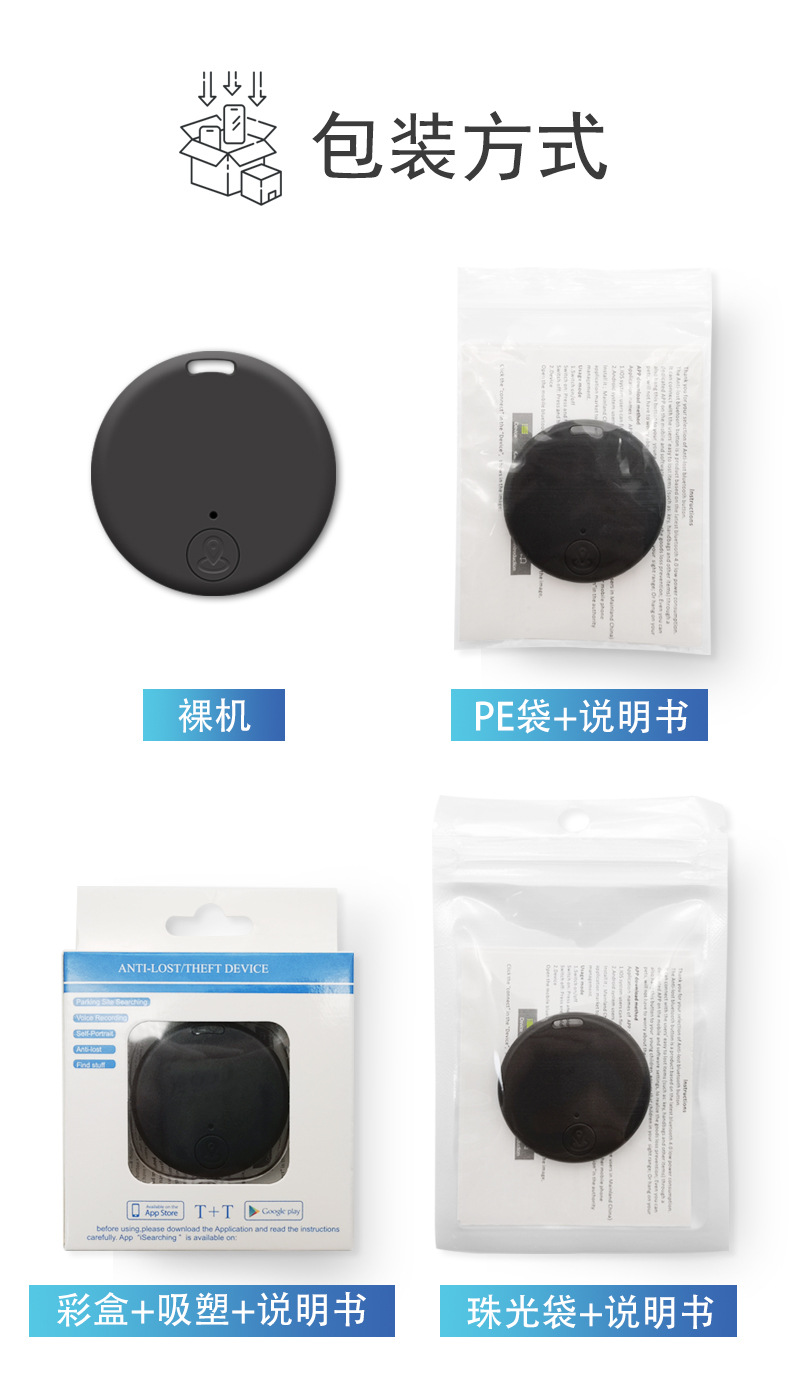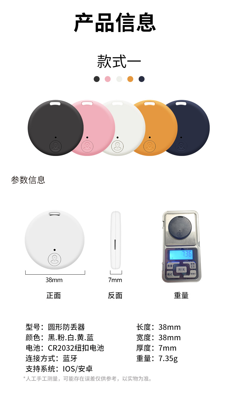 圆形蓝牙防丢器 蓝牙5.0双向报警智能定位手机钥匙防丢器