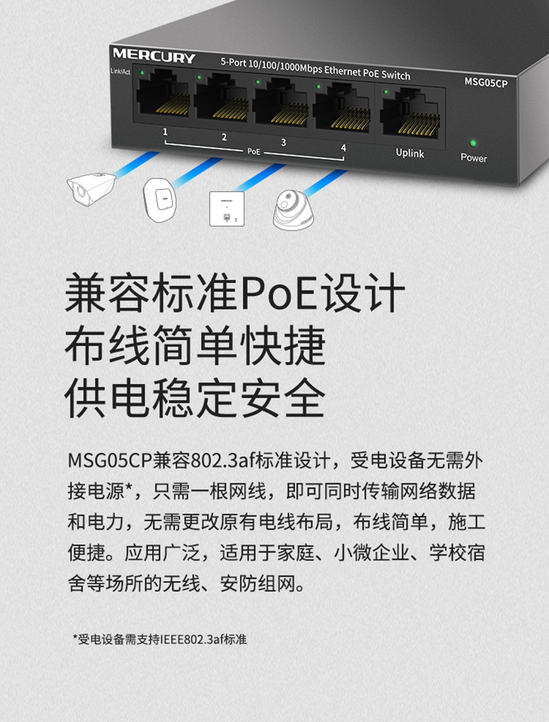 水星MSG05CP 5口全千兆PoE供电交换机安防监控4口POE供电模块