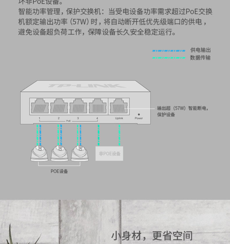 TP-LINK TL-SG1005P 5口千兆POE交换机4口标准供电网络监控无线AP