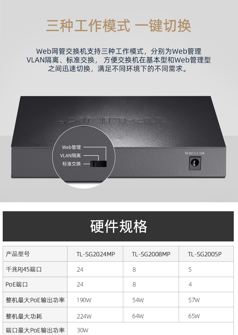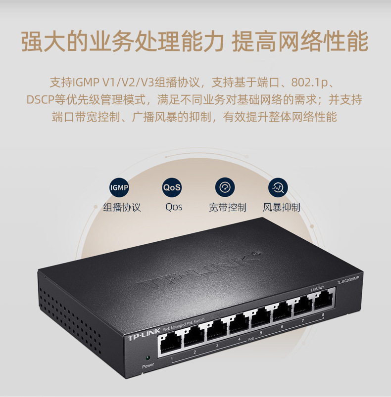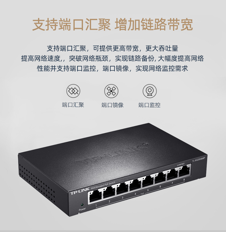 TP-Link全千兆网络交换机TL-SG2008MP云管理企业办公8口POE供电