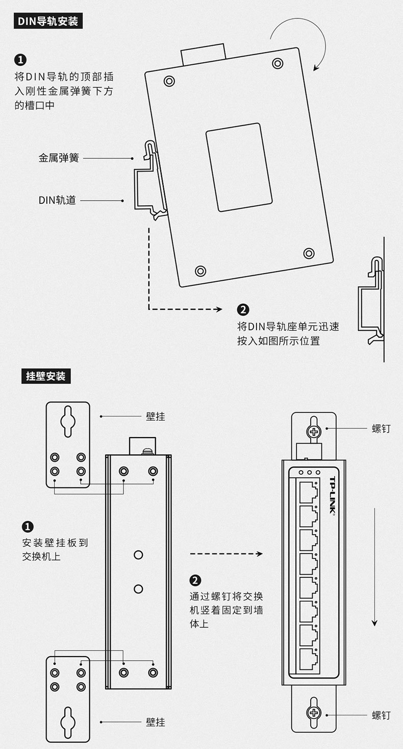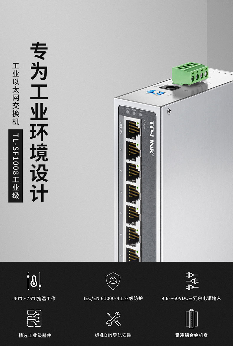 TP-LINK 5/8/16/24口百/千兆工业级交换机VLAN隔离导轨式壁挂安装