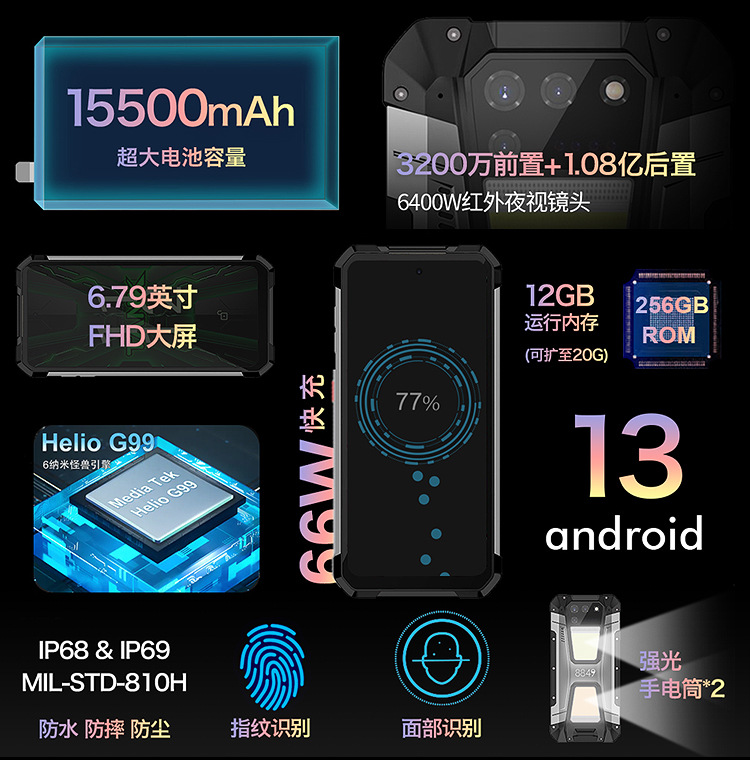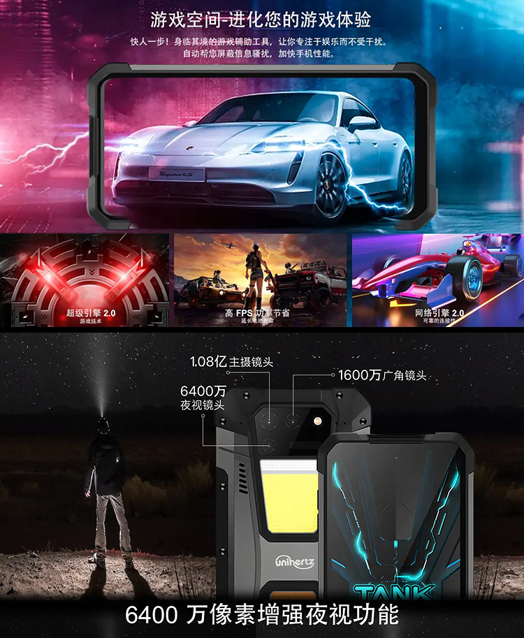 Unihertz Tank 2代 8849三防智能手机激光投影全网通防水超长待机