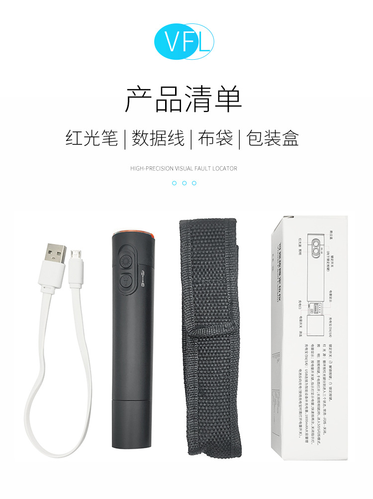 30km红光光纤笔可充电式红光源光纤测试打光笔锂电池红光笔充电宝