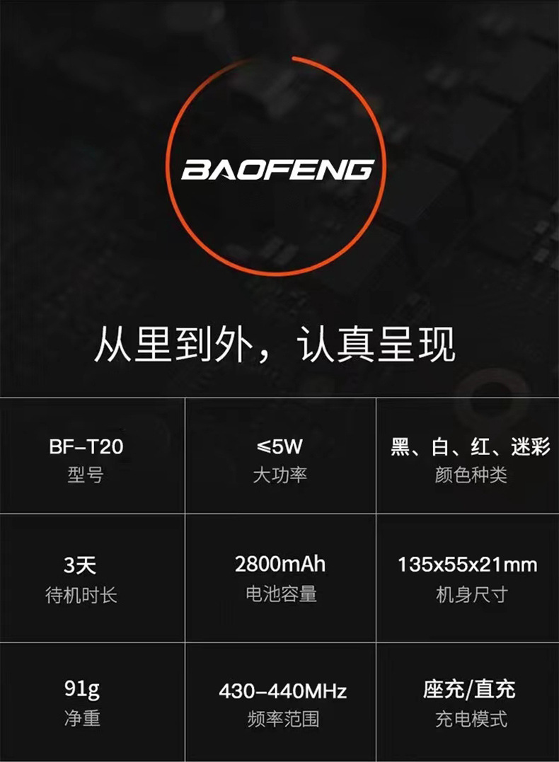 宝峰对讲机批发T20民用大功率5公里远距离户外对讲酒店工